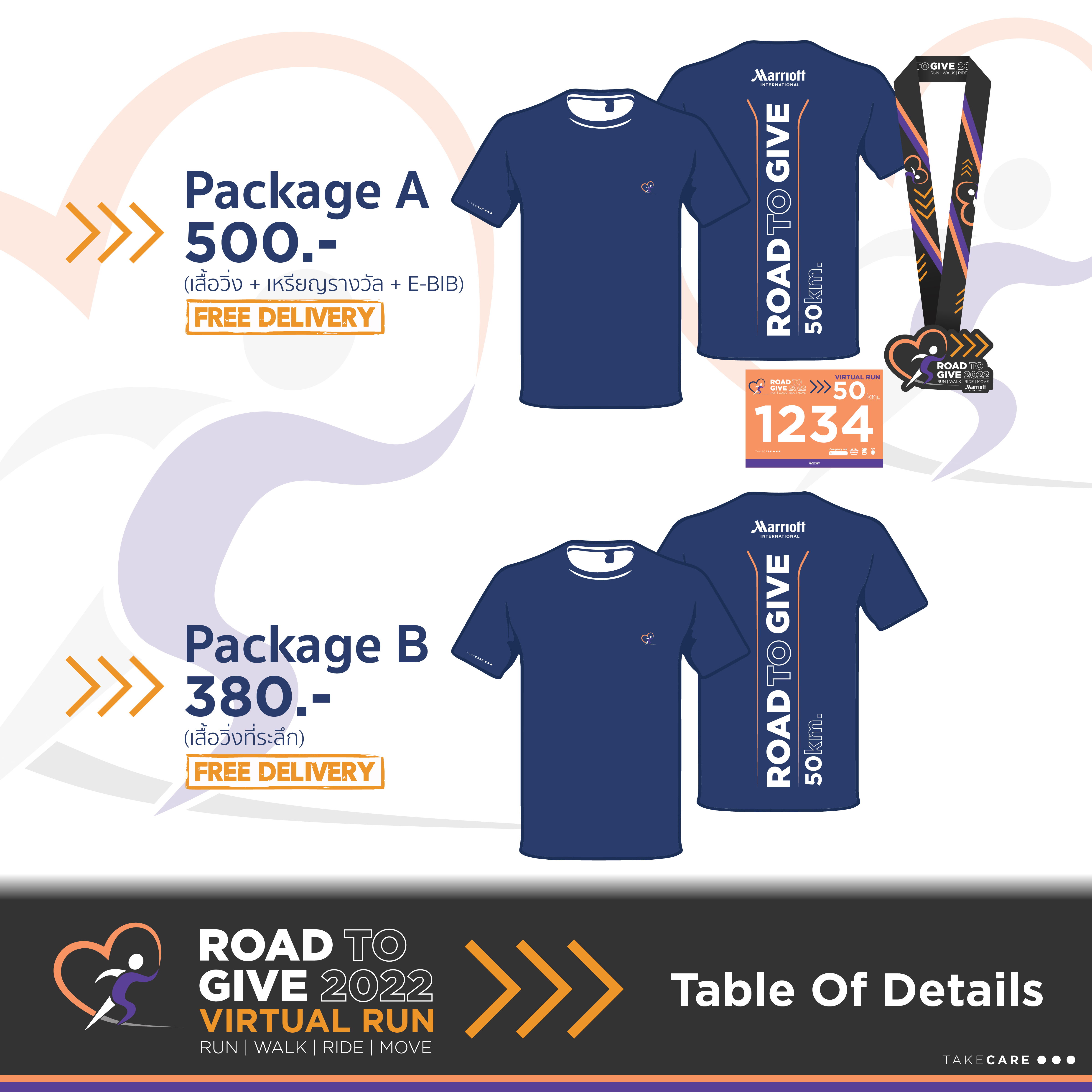 | Package A : วิ่งสะสมระยะ 50 Km. | 500 Baht |
